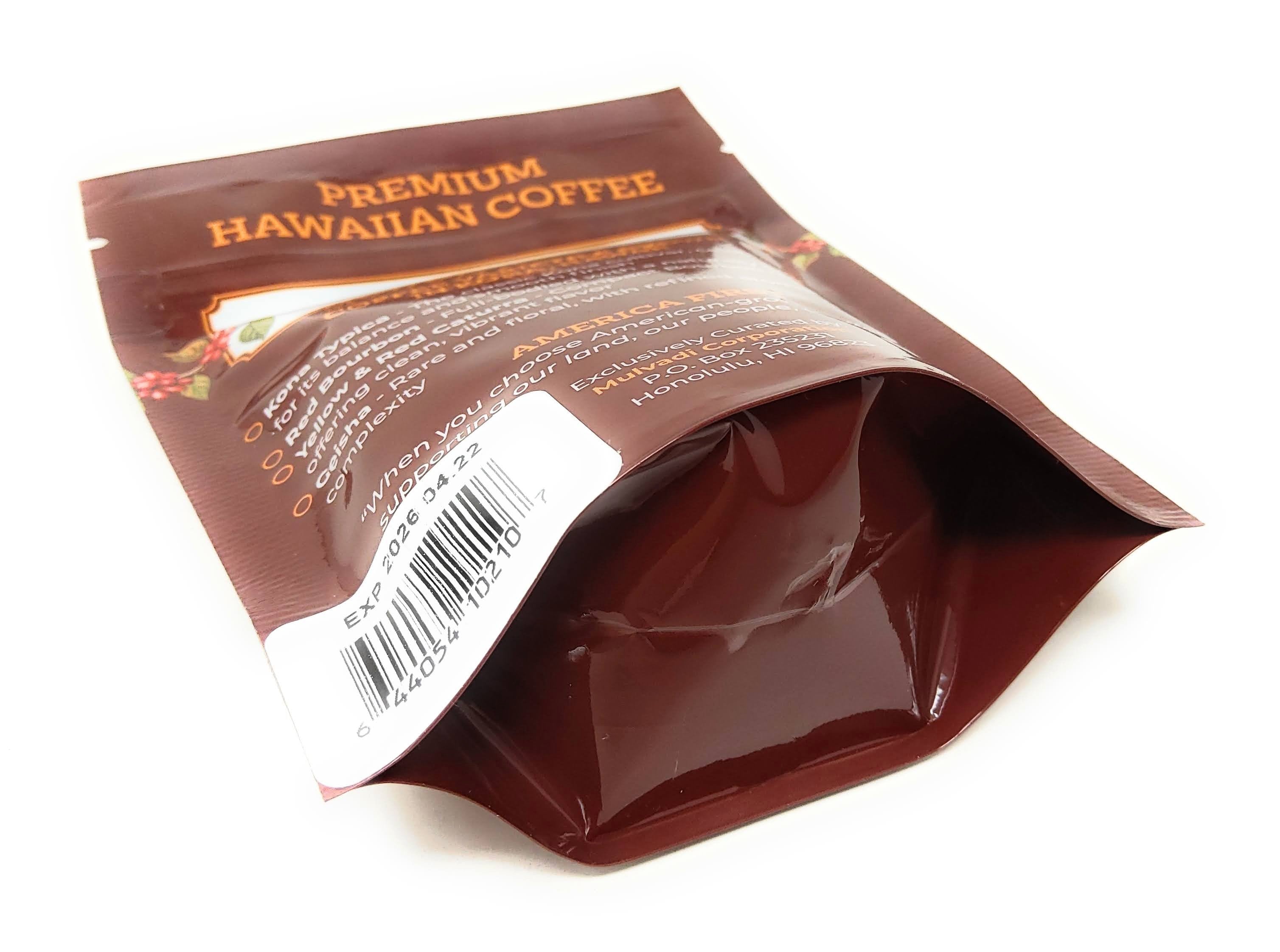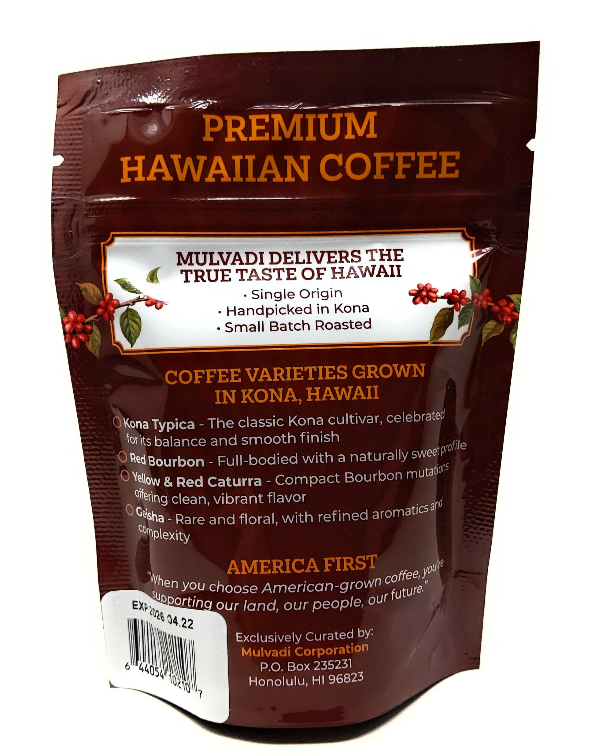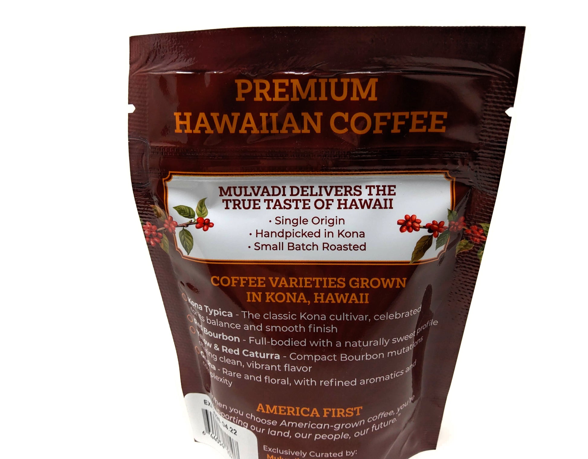 Mulvadi 100% Kona Coffee Ground Medium Roast 2 oz Single Origin Hawaii USA